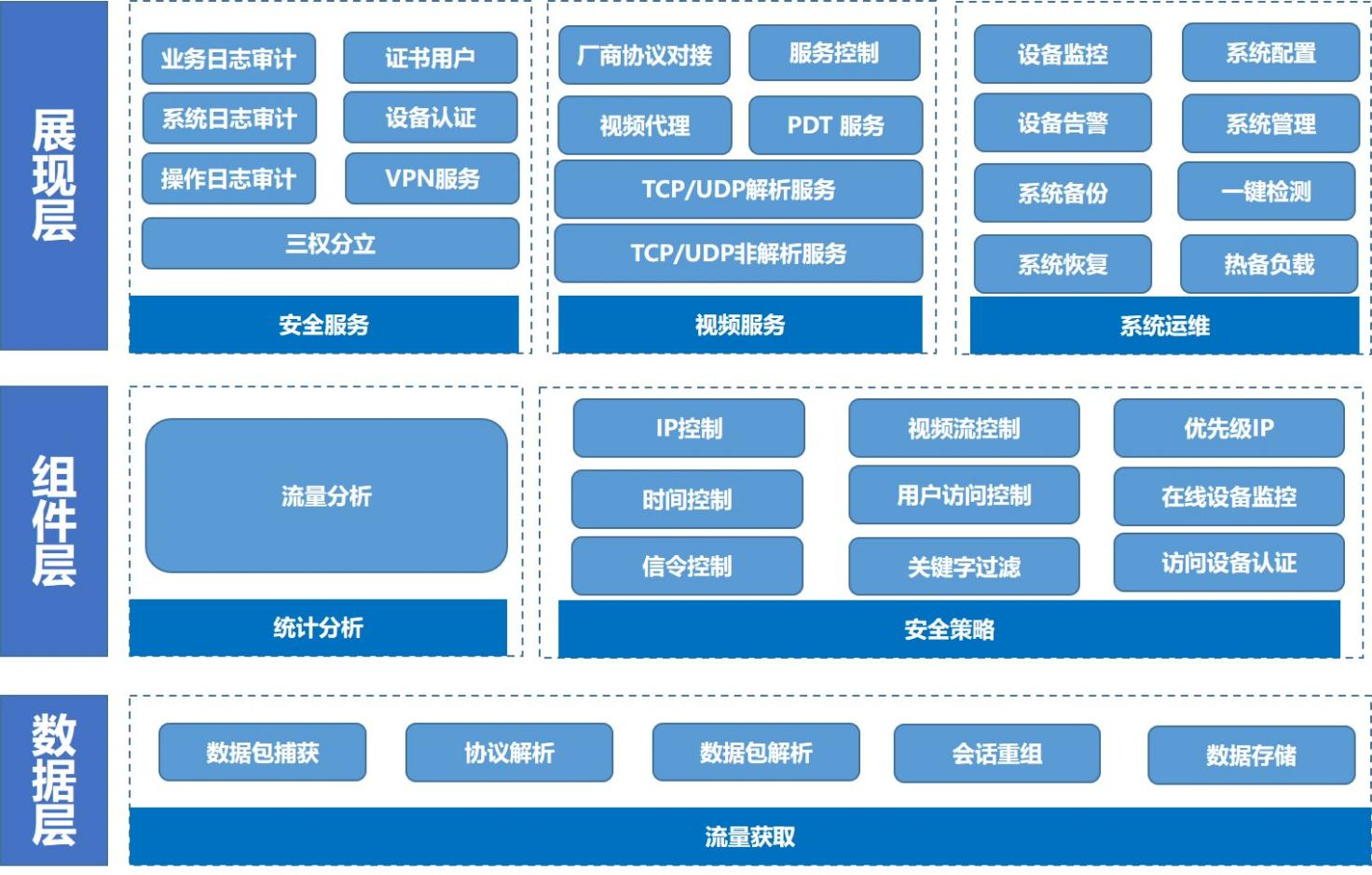 支持對網絡攝像機、網絡硬盤錄像機、流媒體服務器等音視頻設備基于IP、MAC和證書的接入認證;支持對視頻訪問終端、用戶端基于用戶名、口令和數字證書的接入認證。