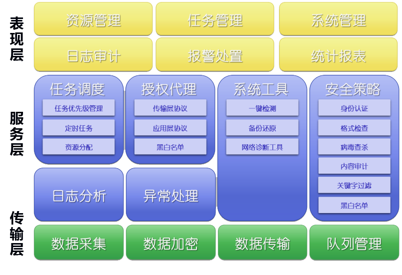 可針對文件交換模塊、數據庫導入模塊和客戶端提供安全防護功能。包括病毒查殺、內容過濾、內容檢查等多