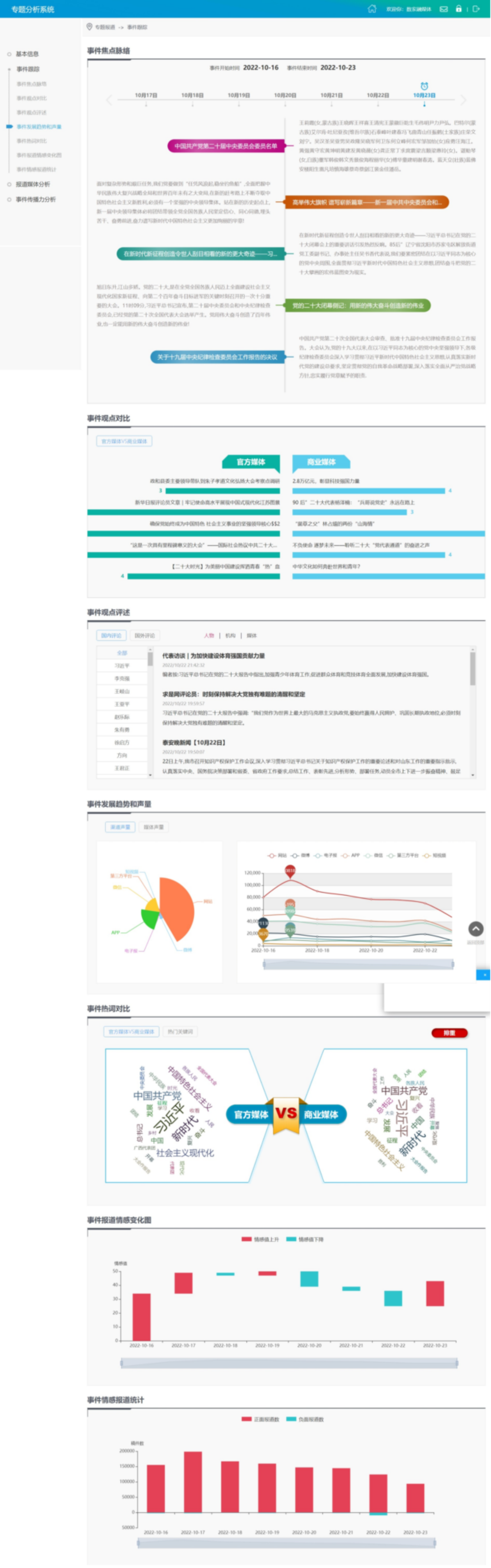 以事件或專題為中心,構建專屬的事件專題分析服務,包括事件的總覽、關鍵因子探索、話題漂移追蹤、事件溯源、傳播節點分析等一系列深度挖掘的內容語義分析場景。