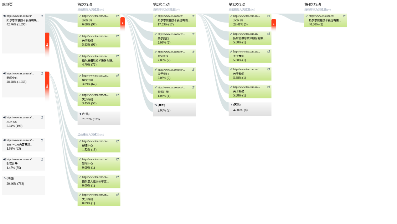 跟蹤記錄每一個訪問用戶的行為軌跡,將整個用戶群體的路徑典型化分析,幫助運營團隊對典型路徑進行識別與特性分析,推動門戶網站的信息結構的優化,運營策略的調整。