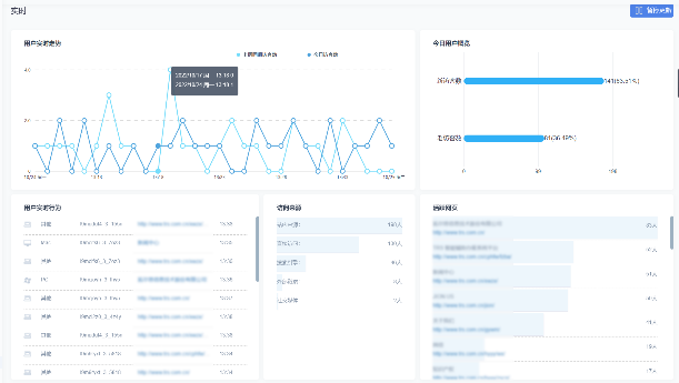 實時監控整個產品的運行狀況,快速了解用戶關注的熱點內容。通過訪問走勢及時捕捉異常情況,結合實時訪問明細,方便快速發現問題。