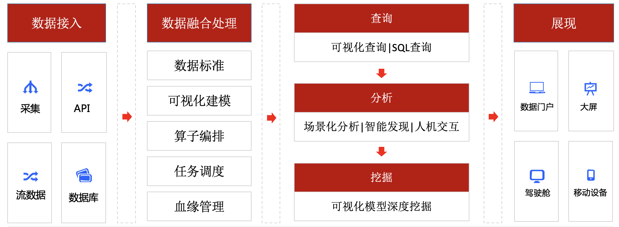 “天驕”數據中臺支持批流一體化對接入的數據和歷史數據進行定制化處理,涵蓋結構化和非結構化的數據處理;除常規的數據清洗,數據打標等傳統數據處理能力,還支持自然語言處理和圖像,音頻,視頻處理;除實時數據處理外,也支持歷史數據處理;同時還支持自定義業務模型進行數據處理。