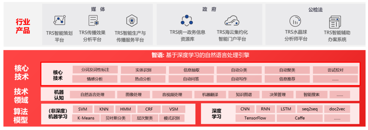 提供情感分析、文本比對、信息過濾、智能檢索、深度語義比對、智能問答、自動寫作、人物畫像、新聞專題分析等基于語義智能的大數據分析能力。