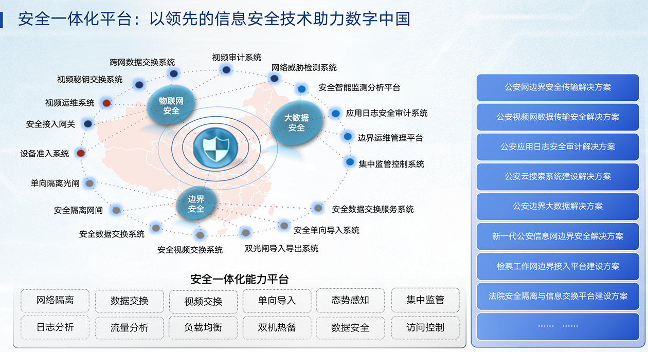 拓爾思天行網安是國內較早從事網絡安全和數據交換的企業,發明了國內第一臺安全隔離網閘,經過二十多年的發展,逐步形成了數據雙向隔離交換、數據單向隔離交換、音視頻跨網調取、跨網接口調用、邊界幾種管理、邊界態勢感知、級聯對接、異常流量分析、業務審計、訪問控制、安全評估、安全咨詢、安全運維等一系列具有自主特色的安全一體化能力平臺。