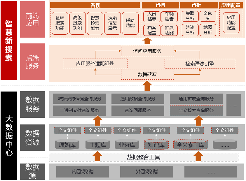 智慧新搜索集成知識圖譜技術和自然語言處理技術、分布式搜索引擎技術等,支持語義解析、問答式檢索、關聯分析等。