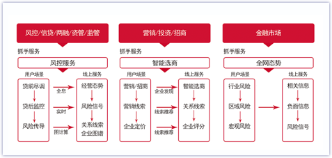 以海量數(shù)據(jù)和完善預(yù)警模型為基礎(chǔ),構(gòu)建風險類型體系,結(jié)合自然語言處理技術(shù),為銀行等金融機構(gòu)評估業(yè)務(wù)風險,提供貸前準入、貸中追蹤、貸后監(jiān)控等多場景風控支持。利用大數(shù)據(jù)創(chuàng)新信用風險管理方式,構(gòu)建企業(yè)全輿情信息圖景,助力金融機構(gòu)實現(xiàn)智能風控。