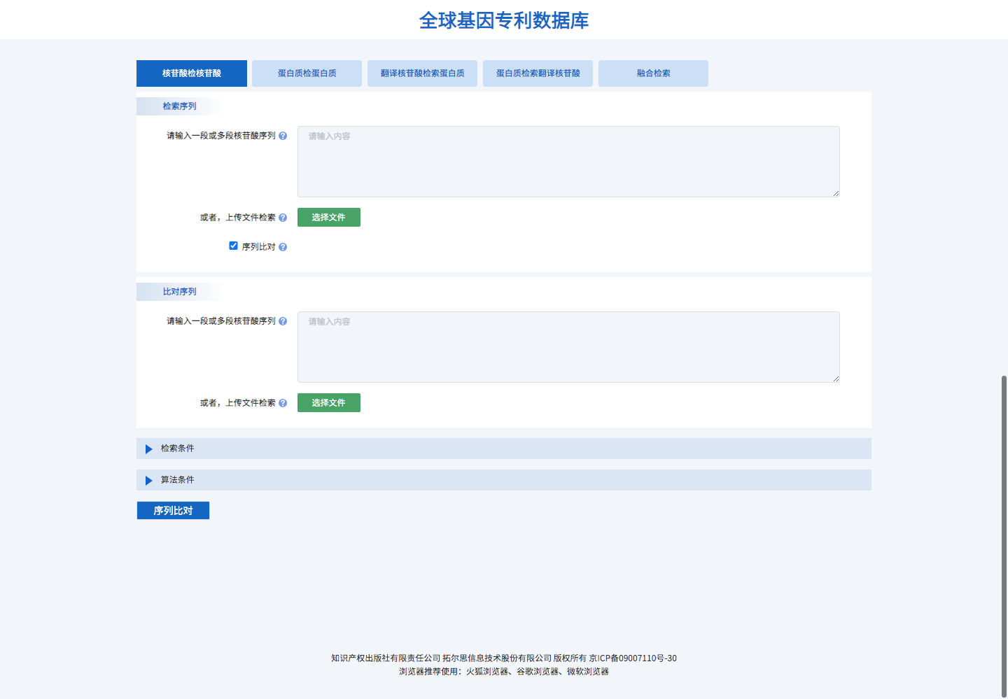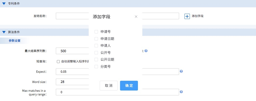 在基因專利序列檢索時通過專利條件中的發(fā)明名稱、申請?zhí)?、申請人等限定基因專利檢索范圍,