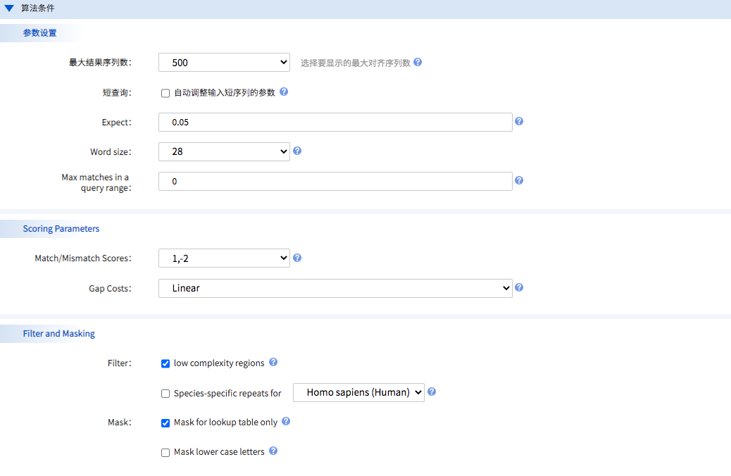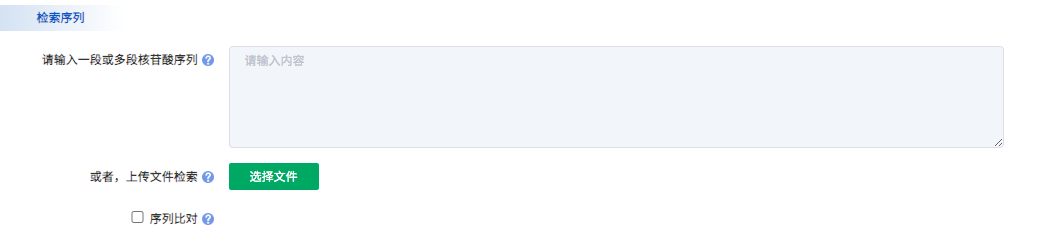 支持核苷酸序列檢索核苷酸數(shù)據(jù)庫、蛋白質序列檢索蛋白質數(shù)據(jù)庫、翻譯核苷酸檢索蛋白質數(shù)據(jù)庫、蛋白質序列檢索翻譯核苷酸數(shù)據(jù)庫,共五種檢索策略。用戶可以通過輸入一條或多條裸序列、fasta格式序列進行檢索;也支持上傳序列文件(支持.txt和.FASTA格式文件)進行檢索,目前最多可支持200條序列同時進行檢索。