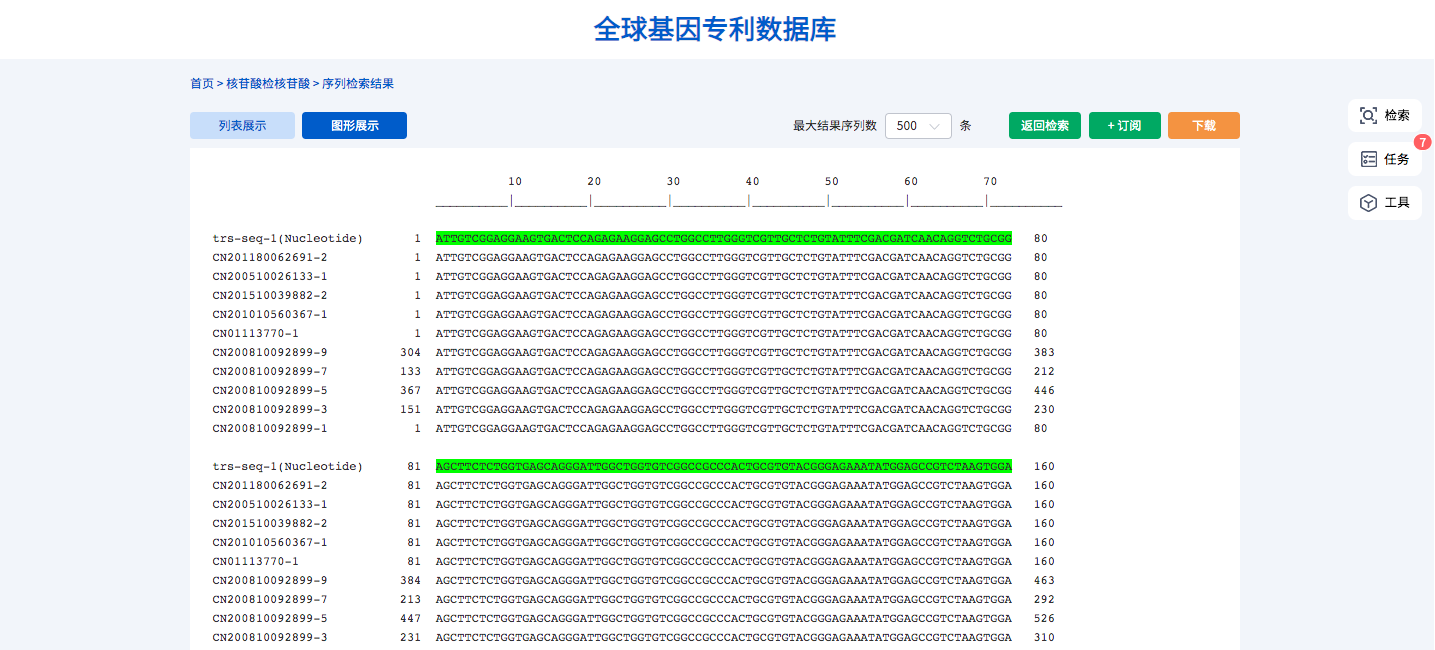 通過調整檢索條件、序列條件、專利條件和算法條件,實現(xiàn)精準檢索;多維度篩選序列檢索結果,為不同研究目的獲取目標序列。