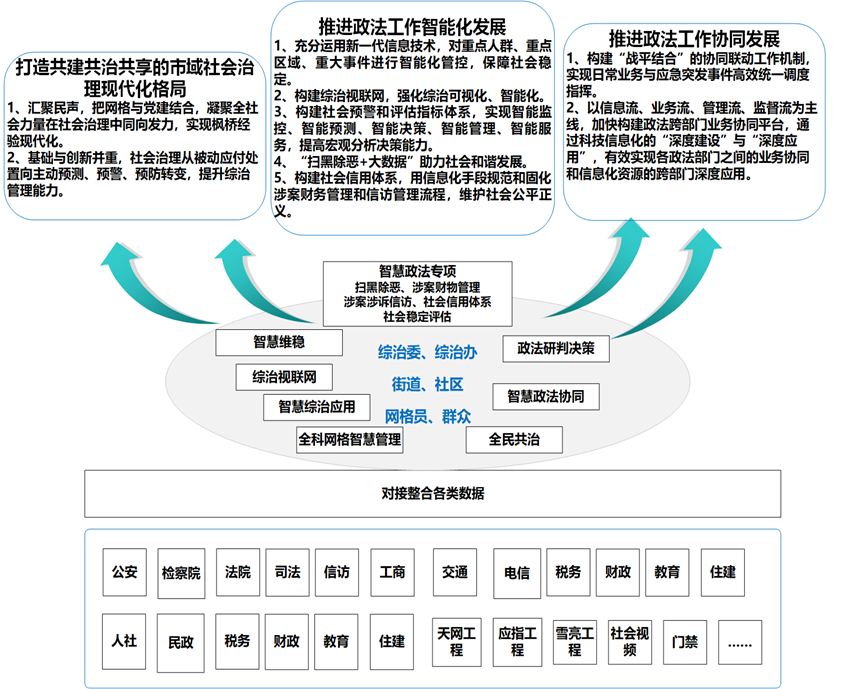 利用信息化手段更好的感知維穩態勢、構建防控體系、指揮協調作戰,達到現有業務的統一展示、統一掌控、統一調度和統一指揮,實現社會突發事件的事前預防預控、事中高效處理、事后分析防控等機制,提升社會安全穩定“預”能力,保障社會安全穩定。