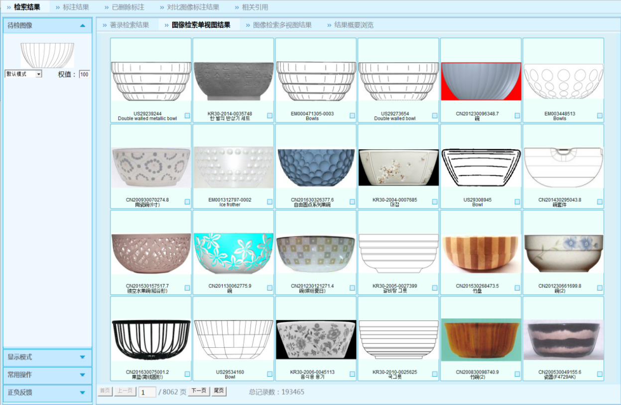 拓爾思經過多年的研究實踐,實現前沿的圖形比對和圖像檢索技術,通過基于圖形內容的檢索,滿足了審查用戶對檢索效率和準確率需求;結合審查員檢索報告的匯總、分析和總結,形成了新的檢索模式進而提高檢索效率;并集成同近義詞擴展、跨語言擴展等輔助技術,進一步提升了檢索體驗。目前圖像檢索系統的D系統三期,支持包括中國、美國、日本、韓國、德國、WIPO、中國香港、中國澳門、中國臺灣等十多個國家、組織和地區的外觀設計專利數據檢索。