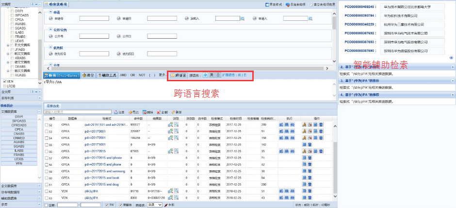 DI Inspiro提供了快捷檢索、表格檢索、號單檢索、可視化檢索、化學結構檢索和生物序列檢索等多種檢索方式。此外,DI Inspiro還配備了功能強大的輔助查詢工具,可實現IPC、專利權人、同義詞、國別代碼、省市代碼、號碼等字段的擴展檢索。用戶可以對檢索結果進行導出、收藏、統計篩選和在線分析,還可以對檢索策略和結果在線自建數據庫導航樹,實現保存和預警。